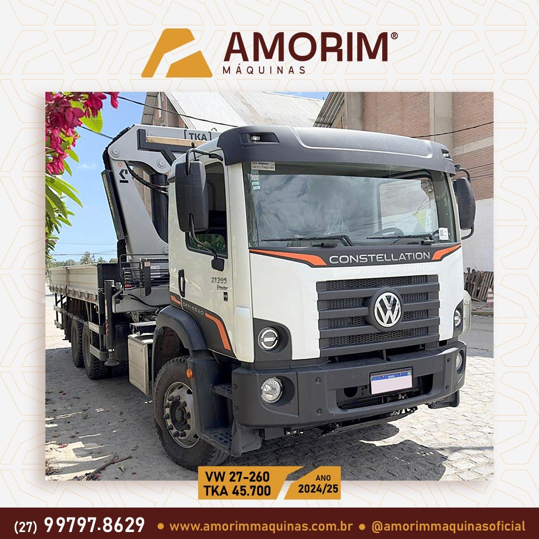 Fabricante Caminhão: Volkswagen. Modelo: Constellation 27.260. Tração: 6×4. Carroceria de aço: 7mts. Ano: 24/25. Km: 10.000.